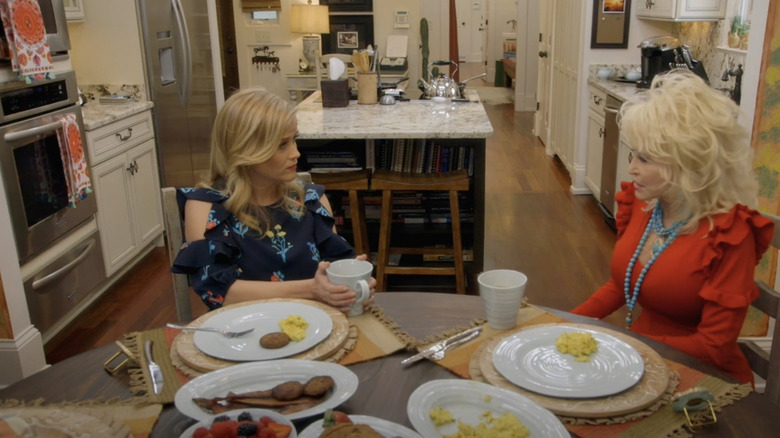Parton sat down for an interview with Reese Witherspoon back in 2018, and fans were lucky enough to see the inside of the singer's kitchen. All things considered, it looked pretty ordinary, but it was Dolly-fied — if you looked closely, pops of color from plants, wall accents, and even towels adorned the kitchen. And while her large island, elegant countertops, and ample cabinetry cost quite a bit, here are five things you can take from Parton's kitchen style and incorporate into your own space for just a few dollars.