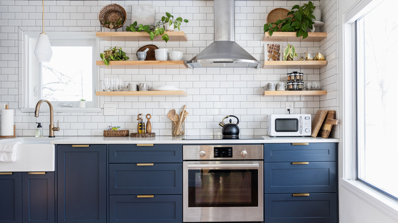 Maybe you want vibrant walls but can't commit to fully wrapping your kitchen in a fun design — not to mention, wallpaper can be time-consuming to install and more expensive than you'd think. In Dolly Parton's kitchen, wallpaper makes a sneaky appearance as just a thick, straight line up and down otherwise-neutral walls. It breaks through the blandness just enough to make a statement without feeling overbearing (though we're not opposed to bringing back the '90s trend of floral wallpaper). Still not sure? Just use peel-and-stick wallpaper, which is less costly than the real stuff and can be removed much more easily. This way, if you get tired of the look, it's a breeze to change things up.