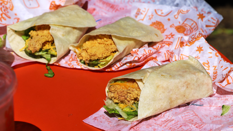 Only available at participating locations, according to Popeyes corporate, anyone hungry to test drive the wraps can head over to the chicken chain's official website to verify if it currently slings the latest release. That stated, every Popeyes location we researched did in fact serve the new wrap menu, so if the urge hits while already in the car, chances are good that you'll be able to take home a wrap or two from your nearest location. The same goes for the blueberry beverage options, which cost the same as other Popeyes specialty drinks ($3.49).