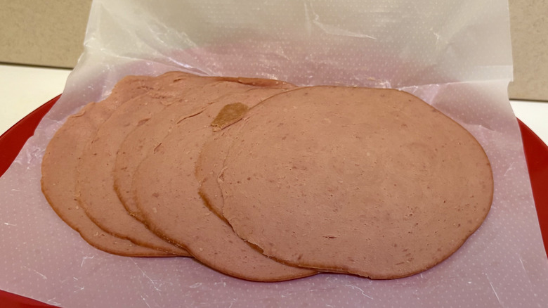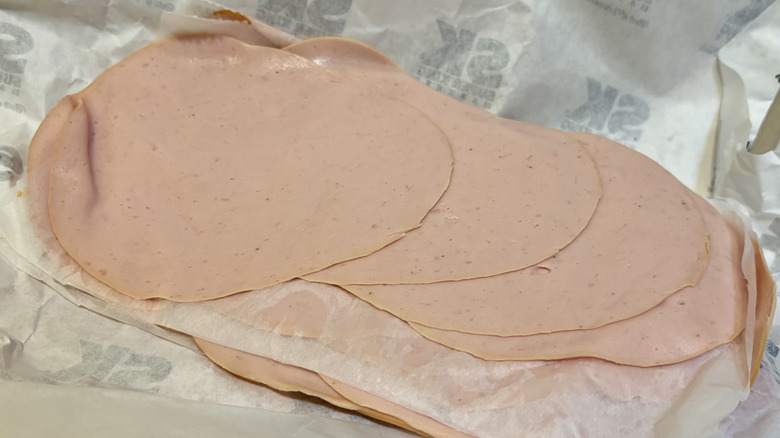 Bologna often gets a bad rap. It's not for nothing — the meat is often high in saturated fat and has a lot of sodium and added preservatives. Also, people are sometimes confused about what bologna is actually even made of, the short answer being a mixture of blended-up beef, pork, turkey, and chicken. Sometimes it's a couple of those; sometimes it's all of them. And for this reason, bologna, to this day, remains somewhat of an anomaly. Well, that and the fact that it's usually perplexingly cheap for sliced meat ... which could be seen as a plus or a disturbance, depending on who you ask.