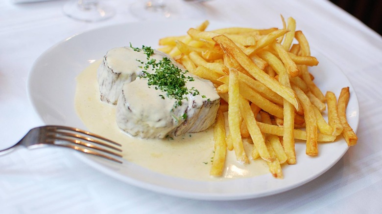 Established in 1345, La Couronne is one of the oldest restaurants in Europe and a fitting place for an introduction to classic French cuisine. The couple started the meal with a bottle of Pouilly-Fumé and a plate of fresh oysters, which Child loved. However, it was the sole meunière that truly blew her away. Child described the delicate flavor of the fish blended with the brown butter and called it "a morsel of perfection." The couple also enjoyed a green salad with vinaigrette, baguette, fromage blanc, and coffee. All up, Child said the meal at La Couronne was "of a higher order than any I'd ever had before."