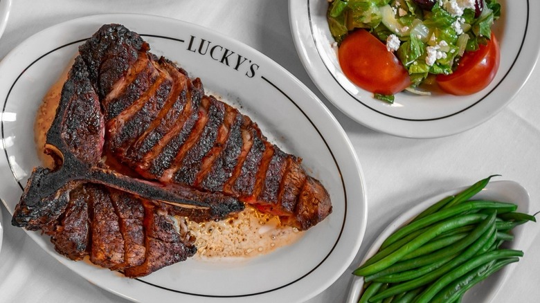 Lucky's offers classic steakhouse vibes with lots of dark wood, white tablecloths, and black-and-white photos of famous faces lining the walls. The menu features classic seafood starters like shrimp cocktail and smoked salmon, salads like the Caesar and iceberg wedge, and all manner of steaks and chops. You can pair your protein with sides like creamed spinach and truffle fries. And, of course, wine and cocktails are on offer. If you can't make it to Montecito, Lucky's also has locations in Malibu, New York City, and a new spot slated to open in East Hampton.