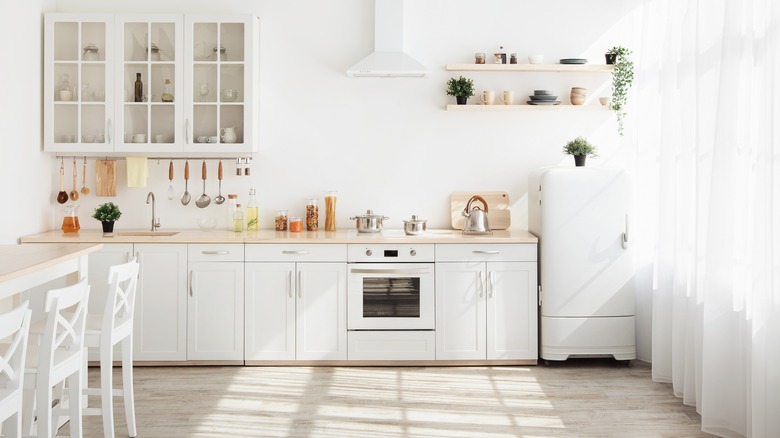 "Prep zones are critical in a kitchen," Lucy Milligan Wahl says. "Many people style their kitchen counters with large appliances, decorative platters, and utensil crocks only to find themselves constantly shoving those things out of the way in order to clear a spot for a cutting board or bowl." Clearing off your counters from the get-go is one of the most functional decisions you can make when setting up a new kitchen.