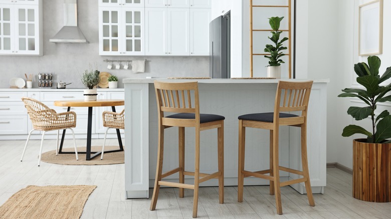 If you have a tiny kitchen, see if you can put a chair or stool under a window. You could also set a small prep table in the middle of the room or keep a floating stepstool for little ones. In a larger one, consider a window seat or breakfast nook so there's always somewhere to hang.