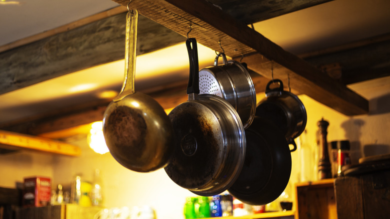You don't always have to hang them, either. You can put a Toplife Pots and Pans Organizer Rack for Cabinet and Countertop in an out-of-the-way space or hang a Oropy 23 Inch Wall Mounted Pot Rack Storage Shelf on the wall instead of from the ceiling. "It makes you look like you know what you're doing — even if your go-to meal is instant ramen," Rocco Carulli says. And isn't that everyone's goal?