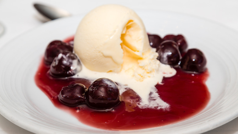 If you grew up watching desserts get lit on fire at fancy restaurants, chances are it was cherries jubilee. This boozy fruit dessert was created by French chef Auguste Escoffier in honor of Queen Victoria's Diamond Jubilee, which took place in 1897 and celebrated 60 years of her being on the throne. Escoffier knew that the queen loved cherries, so he created a dish of cherries poached in syrup, doused in alcohol, and served in timbales. The final touch was lighting them on fire to add a bit of flair.