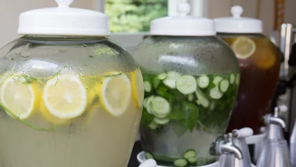 The best part is that these stations are easy to set up and clean up, but that doesn't mean squat if you don't know what to serve. A good drink station prioritizes convenience, and there are a number of cocktails you can easily make in batches, including some crowd favorites like margaritas and sangrias. These batch-made cocktails make you the host with the most. But also remember that you should include a nonalcoholic or mocktail selection for those who don't want any alcohol. That should usually include tea and water dispensers dressed up with sliced fruit and a selection of sodas. And don't forget to make room for anything your guests BYOB.