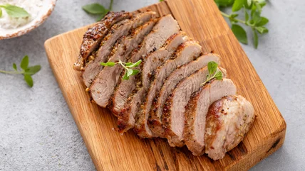 In the same vein, thick, bone-in chops will take the longest to reach safe internal temperatures because the heat has to penetrate not only the meat itself, but also the bone. While the bone purportedly adds lots of flavor and moisture, it's also denser than the meat, so it takes longer to heat through. Though thicker cuts contain more natural juices simply because they're larger, they may still become tough without some extra care — a simple marinade with an easy ratio of oil to acid not only adds flavor, but helps tenderize your pork and protect it from getting dry.