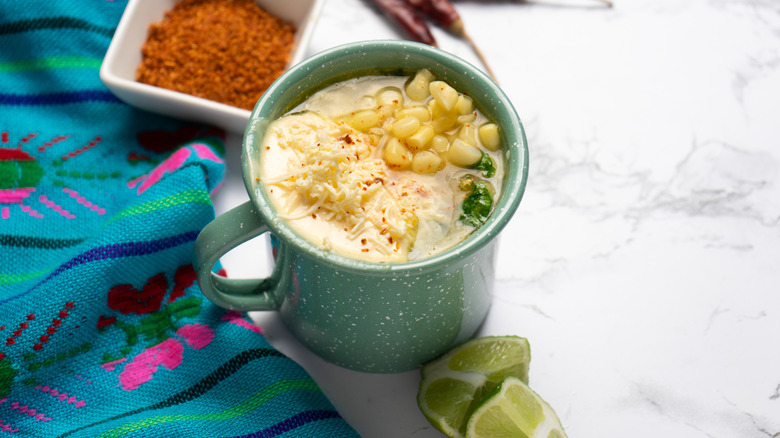 Mexican street corn, or elote, is often associated with Mexico City where it's a popular street food. Corn, in general, has deep ties to Mexican cuisine, as a revered food since at least the Aztec period. You can honor the roots of Mexican street corn — brought stateside by immigrants, as so many beloved dishes are — while giving it your own spin.