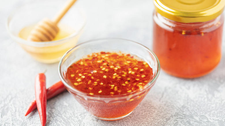 Aside from using a thicker cut bacon, the rest of the ingredients are pretty versatile. The kind of sweetener to use is up to you, though honey and brown sugar are the top contenders to get the sticky, crispy edge that everybody loves. Hot honey is a great option for this bacon, for obvious reasons. This hot honey infused with peppers can be made at home or store bought. Brown sugar creates the caramelized flavor that makes almost everything more delicious.