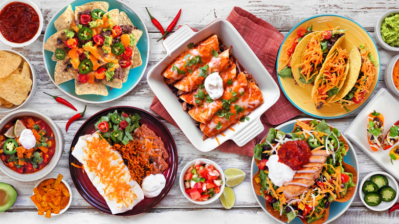 Yucatan cuisine, for example, highlights smoky flavors, along with citrus and anchiote; many dishes also include habanero peppers. The region is most-known for pibil, a general term for foods roasted in a pib and infused with smoke and spices. If you're dining at a Yucatan-style Mexican restaurant, check for whether the dishes are cooked in a pib or not; that will help gauge how traditional the menu is. While any restaurant can serve Mexican food, there are other baseline ways to tell traditional versus nontraditional. Take a look at the tacos, for example. Tacos made with corn tortillas and topped with ingredients like onions and cilantro are often an indication of traditional Mexican cuisine — as opposed to flour tortillas topped with lettuce and shredded cheese.