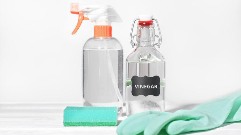Instead of reaching for the bleach, choose a different cleaning product that is also a pantry staple. According to Alexis Rochester, "The best ingredient for stainless steel is 5% white distilled vinegar." As for how much of it you need and how to use it, she says, "You can make a homemade solution with 1 cup of white distilled vinegar and 2 tbsp distilled water. Add this to a spray bottle, spray your stainless steel sink, let it sit a few minutes, then wipe off with a microfiber cloth."