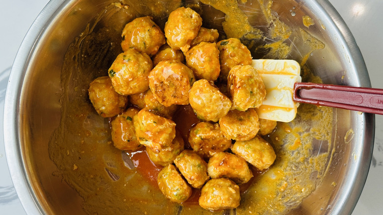 - Add the hot meatballs to the butter mixture and toss gently to coat.