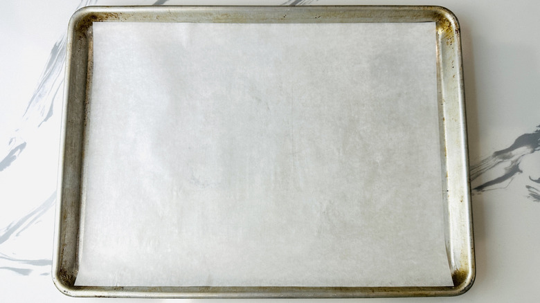 - Line a rimmed baking sheet with parchment paper; set aside.