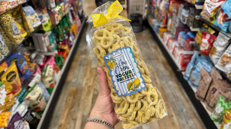 Of course, there's one thing in the kitchen more important than all the tools and decorations: the food. And with a little bit of creativity, even the way you display certain food items can add to the aesthetic. Although they're not inherently coastal in nature, this bag of lemon creme yogurt pretzels is packaged in such a cute way, with blue pinstripes and a yellow ribbon, that displaying it on the center of your kitchen island can make your snack selection feel like it came straight from the boardwalk at the beach.