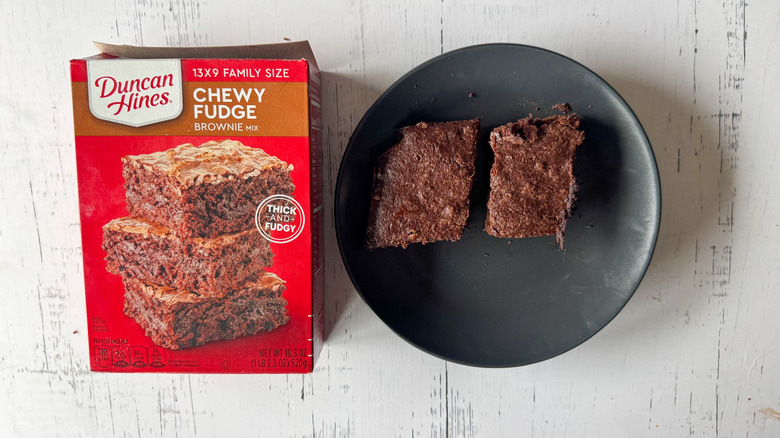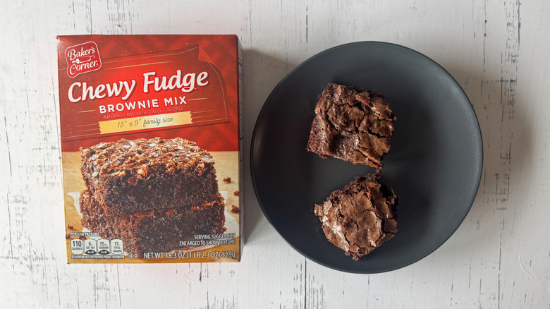 One of the mixes I always have on hand is for brownies. While the photos on the exterior of brownie mix boxes suggest the companies have figured out the perfect ratio of ingredients for a crisp, crackly top and fudgy interior, I wanted to figure out if that was actually the case — and to see which brand does boxed brownies the best. So, I dove headfirst into the ultimate baking challenge: preparing as many brownie mixes as I could find to see which one made the best batch. I looked for brownies that were fudgy, soft, and easily distinguishable from cake in terms of their lacquered top and molten consistency, and ranked each of them from worst to best.