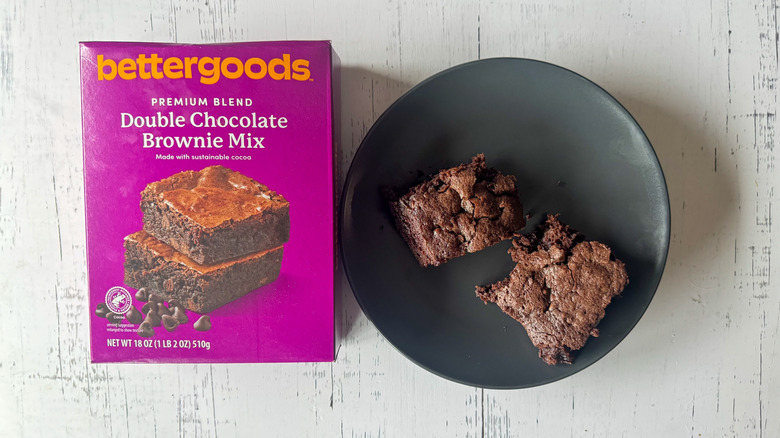 Bettergoods is Walmart's newest private-label brand; it includes more plant-based options, innovative flavors, and "free-from" options than its other popular private label, Great Value. This fuchsia box of brownie mix was priced much higher than other brands I sampled, including name brands like Duncan Hines and Betty Crocker. But I would pay pretty much anything for a good brownie — so price is a moot point.