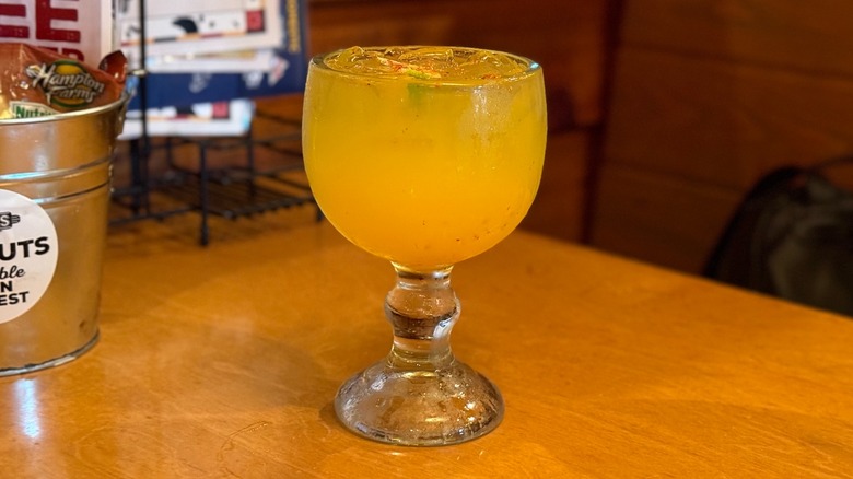 There are a few ordering mistakes you can make at Texas Roadhouse, but choosing The Legend margarita isn't one of them. This cocktail definitely lives up to its legendary name and was the favorite marg on the Texas Roadhouse menu from everyone in our group who tried them. The Legend is made with three tequilas, plus Grand Marnier and margarita sour mix. It has the most forward tequila flavor, but it's still very smooth since it uses some quality tequila, specifically Patrón Silver, Patrón Reposado, and Patrón Añejo.