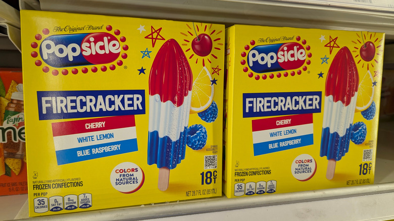 These red, white, and blue pops come with several different names, including "Firecracker Pops," "Rocket Pops," and "Bomb Pops." They were originally invented in 1955 and contained cherry, lime, and blue raspberry-flavored ice, pressed into a signature rocket shape. However, the flavor and shape of this pop wasn't the most unique thing about it. The company that bought the Bomb Pop recipe from its original creators in 1991, Wells Enterprises, had a trademark on it — but that didn't stop burgeoning treat brand Popsicle and its Firecracker Pops from trying to fight the trademark. TL;DR there was a lot of suing and countersuing involved, which is why you will see both brands on store shelves and on ice cream trucks.