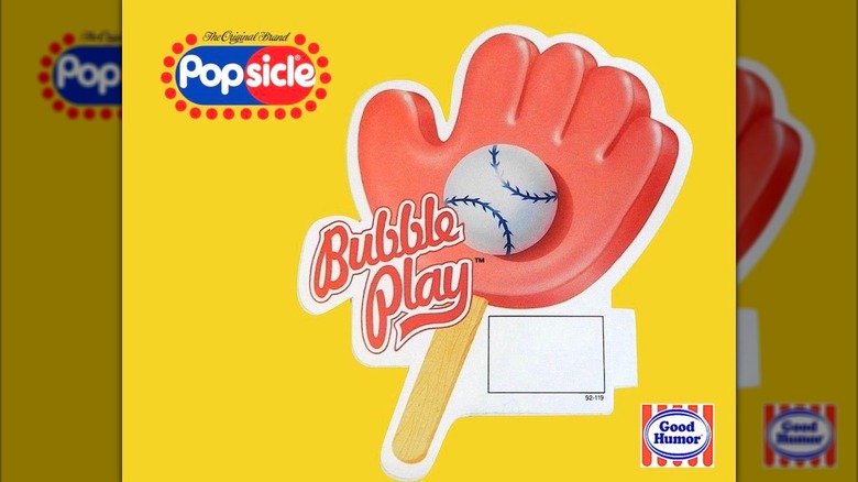 Bubble Play ice cream looks like an ice cream novelty straight out of the '90s. This ice cream bar first appeared on Good Humor trucks in the mid-'90s and featured a cherry ice baseball mitt and baseball-shaped gumball.