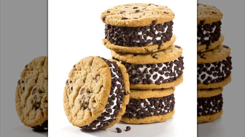 The cookie ice cream sandwich, also known as the Chipwich, is like the ice cream sandwich's fun cousin. Instead of using chocolate wafer cookies, this ice cream truck staple utilized soft cookies and a mini chocolate chip coating. Crave Better Foods claims ownership of the Chipwich, arguing that it invented the combination in the 1980s. However, the earliest form of this upgraded ice cream sandwich was arguably the 1928 It's-It, which featured two soft oatmeal cookies sandwiching vanilla ice cream and dipped in melted chocolate.