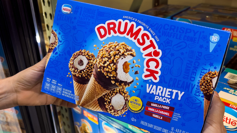 If you make a trip to your local gas station's ice cream chest, chances are that you'll be able to find some Nestlé Drumsticks nestled inside of it. The Drumstick, which features a vanilla ice cream cone, covered in chocolate and rolled in nuts, was actually created all the way back in 1928 by two brothers: I.C. and J.T. Parker. The duo was interested in making their own ice cream to sell, but quickly realized that their cones got too soggy on their way to stores. Food scientists from Ohio State University recommended adding a chocolate coating to the top of the cone, and so the drumstick was born.