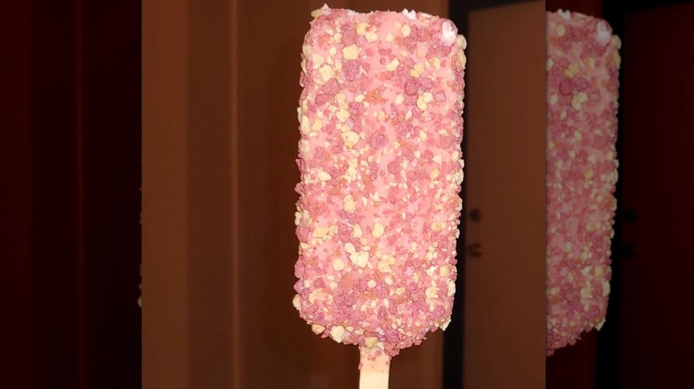 If you have an affinity for fruity-flavored ice cream, you may have tried a strawberry shortcake pop or two back in your day. The original strawberry shortcake bar, which is still sold today, was essentially a berry-forward version of the toasted almond Good Humor bar. It has a sweet, strawberry-flavored cake center, vanilla ice cream coating, and strawberry cake piece coating on the outside.