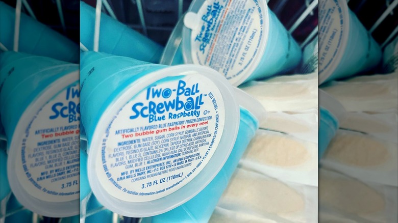 Eventually, Screwballs started to come in more flavors, including the popular blue raspberry. You could even find Two-Ball Screwballs, which contained not one, but two gum balls at the bottom. While they weren't the creamiest of ice cream treats, they were no doubt refreshing on a hot summer day.