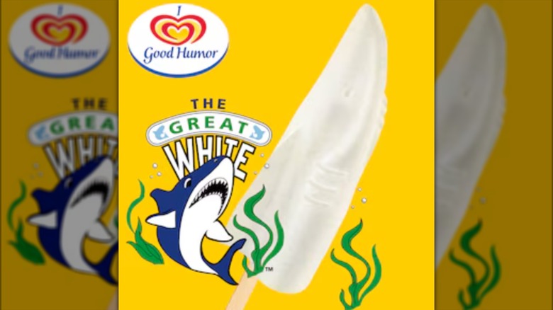 Sharks at the beach? Oh no! Don't worry, we're talking about the Great White pops, which are a little more of a welcome sight at the beach than the dreaded dorsal fin. This lemon-flavored pop, which is in the shape of a Great White (or at least its front half), is white in color, which makes it stand out among the more colorful selections on this list. It was a popular '90s ice cream truck treat, but it is now lost to history.