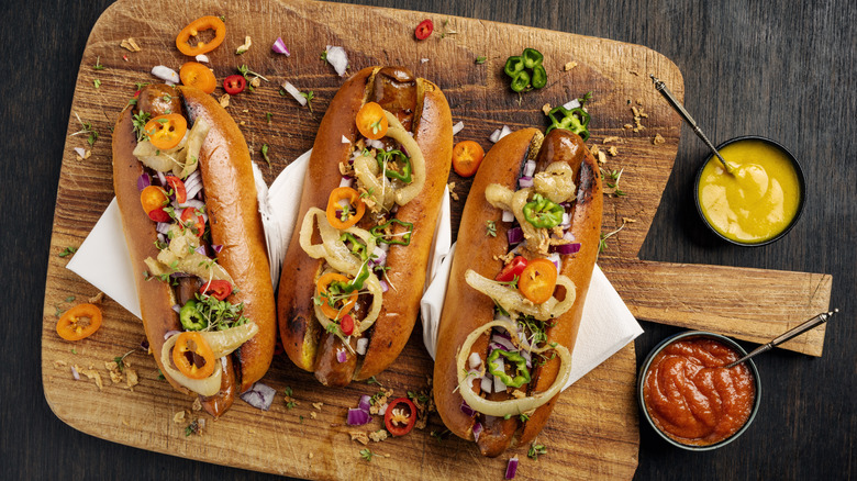 Sometimes hot dogs are called franks because sausages of the German style end up between the buns. You might recognize the shorthand from Nathan's Famous Franks, an all-beef link made in the rindswurst style. The same kind of nuanced distinction applies to wieners, which are known for a softer composition and a less-noticeable casing as opposed to other hot dog types. Hot dogs have now embraced many variations, but Frankfurters and wieners remain major influences.