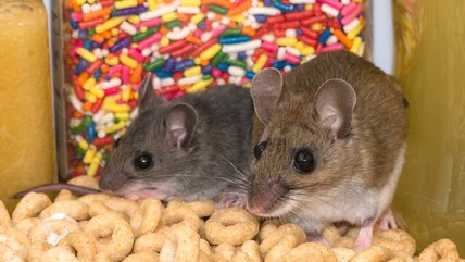 The main reasons mice are in your home are food and shelter. By cutting off the food supply in your pantry and cabinets, they won't have a reason to stick around. Mice can chew through cardboard and thin plastic, so it's a good idea to transfer items like cereal or crackers to more durable containers. Any items that mice have already infiltrated need to be disposed of immediately, as they can carry hazardous germs.
