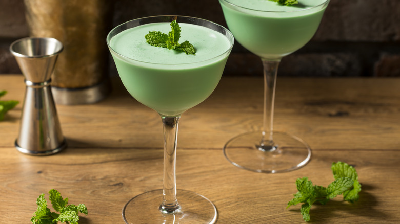 A distinct after-dinner drink with an unforgettable color, the Grasshopper is a chocolate lover's cocktail paired with a refreshingly minty taste and creamy texture. The main ingredients in the cocktail include crème de menthe (purchase the green-hued version if the bold color is a top priority for serving), crème de cacao, and heavy cream or half and half. It was first made at Tujague's Restaurant in New Orleans in the early 20th century, with a few subtle updates over the years, such as blending different kinds of crème de menthe and crème de cacao and including brandy in the specs.