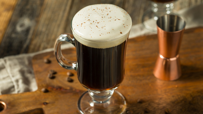 When a fun day off still calls for coffee in the morning, and maybe a lick of something more potent, the Irish Coffee is ready to caffeinate. With its strong brew, and even stronger whiskey, this spiked hot drink is a worthy option for mixing in a little mocha flavor. This simple yet comforting beverage relies on just a small handful of quality ingredients: good coffee, Irish whiskey, granulated or brown sugar, and gently whipped heavy cream for the cloudlike topping.