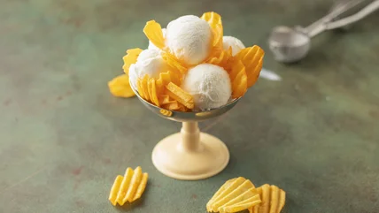 This combination works because of the contrast in flavors. The potato chips' saltiness sharpens the vanilla and the fat in the chips complements the dairy. The crunch delivers extra dimension and satisfaction. Thicker chips, like those with ridges or a kettle-cooked variety, hold up better without getting too soggy. Crumble a few chips on top of your scoop right before serving to keep them crisp.