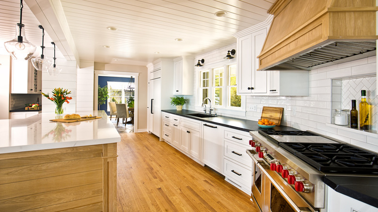 Unsurprisingly, many vintage kitchens were not designed with modern workflows in mind. One of Joanna Gaines' best renovation and remodeling tips is to prioritize a layout that is both functional and visually harmonious. On an episode of "Fixer Upper," Season 2, Joanna highlights the transformative power of smoothly designed open-plan spaces over awkward, choppy layouts. This philosophy guides her design process, prompting her to make thoughtful decisions about each major component of a space — in a kitchen, this means giving some real thought to where appliances go and how prep spaces are arranged. She often reconfigures cramped or outdated layouts to create a more open area — sometimes by removing walls, expanding countertops, or incorporating an island that doubles as a work zone and a communal gathering place.