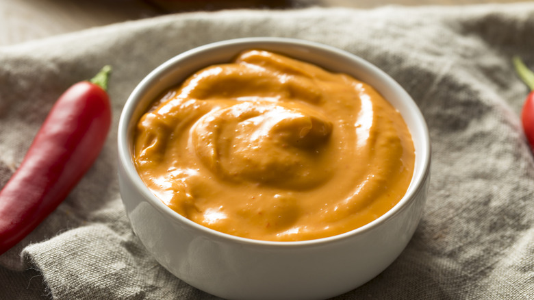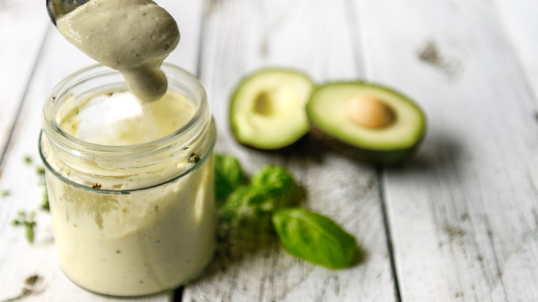 This dairy- and egg-free dipping sauce can be made with simple ingredients, including ripe avocados, oil, and an acid like lemon juice or vinegar. We recommend sprinkling in some cilantro for a bright bite or adding a bit of lemon zest to balance the fruit's fattiness. The perk of whipping up avocado mayo at home is that you can save the extra spread and use it on sandwiches or drizzle it on your batch of homemade California rolls — bonus points if they're made with leftover crab.