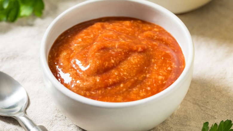 It pays to get creative with your sauces. Instead of opting for the traditional ones like drawn butter and remoulade, try an Asian-inspired condiment: sweet chili sauce. The sweetness of the sauce will help amplify the natural sweetness of the crab legs, while the heat will add the perfect amount of tongue-tingly flavor and round out the entire bite. However, the spice level in this condiment is approachable — at least, more approachable than straight hot sauce — making it an excellent choice for someone who doesn't want their palate to be set aflame.