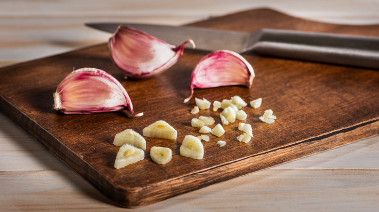 The easiest way to make garlic butter in bulk is to make a compound butter by whipping regular butter in a stand mixer and adding in your minced garlic. When you're ready to dip, just melt the fat in your microwave and dip your crab legs in. It's best to use fresh garlic for your recipe, rather than pre-minced garlic that's sold in a jar or squeeze bottle, because it has a fresher and more pronounced flavor. You can also get creative and swap out fresh garlic for black garlic. These fermented cloves have a far sweeter and more umami-rich flavor, which is a great complement to the natural sweetness of the shellfish.