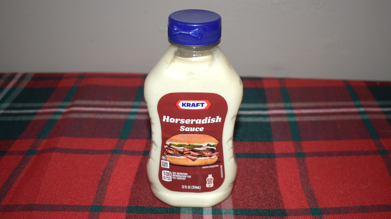 Kraft is a brand that most of us are familiar with, whether it's their dressings or barbecue sauces. For over 120 years, they've been bringing us delicious toppings for our sandwiches, burgers, and salads. You can find it in most grocery stores in the United States. Now, this is a bit different than the other horseradish options on the list so far. The first two were prepared horseradish, while this is a horseradish sauce.