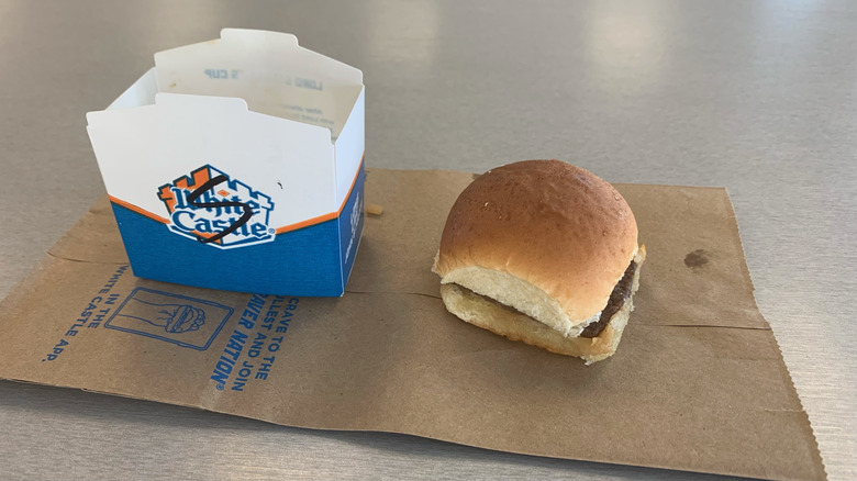 It's a little disheartening, after starting this conversation off by noting the brand's ties to slider origin lore, that today's White Castle original slider ends up lowest on the rankings. All the pieces that made this one great back in the day are still in play — meat, bun, onions, and pickle- seemingly as they have always been. It's simply a matter that, with all the advances in burger technology we have made as a society since the 1920s, this particular slider no longer wows.