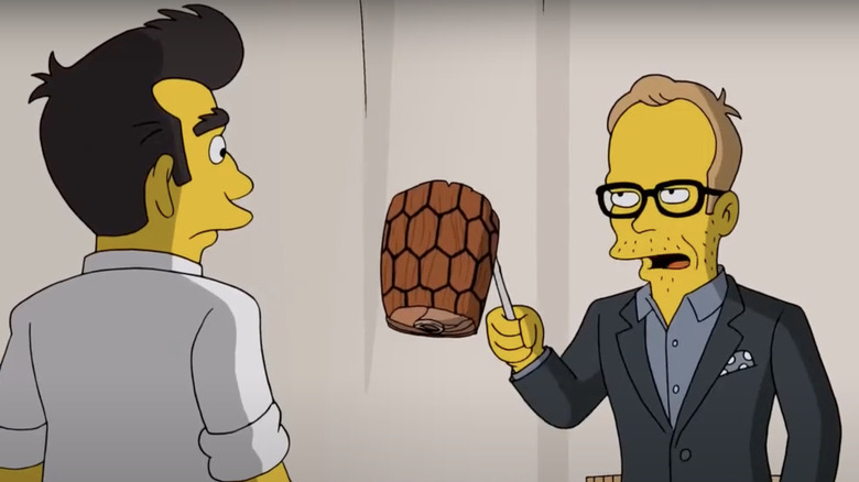 Going even further, in the 2015 episode of "The Simpsons" titled "Cue Detective," Brown lends his own voice to a cartoon version of himself, spoofing his television persona with exaggerated flair. He delivers rapid-fire critiques and culinary commentary in the middle of a barbecue showdown, playing the part of hyper-verbal food savant to perfection. The episode is a loving lampoon of food television and a nod to Brown's iconic status in the genre.