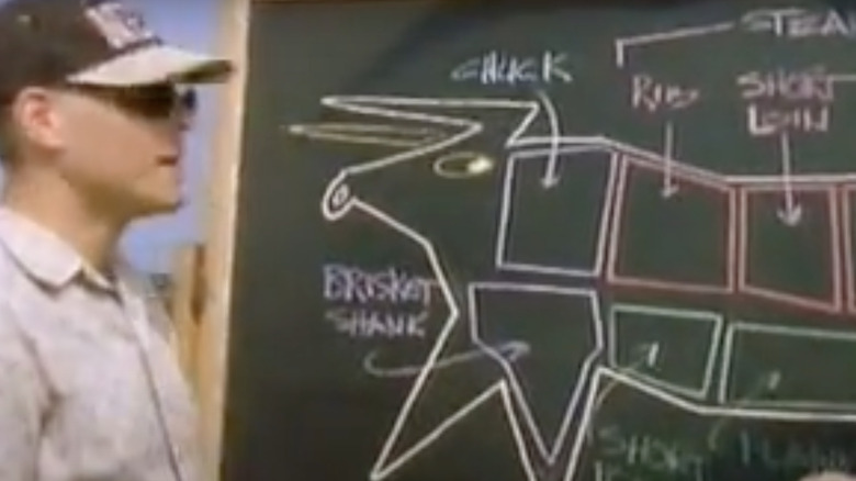One of Alton Brown's most defining moments came in the "Good Eats" episode, "Steak Your Claim." It originally aired during the show's first season and, famously, it was the first episode to broadcast on network television. In this 21-minute masterclass, Brown does more than just teach viewers how to cook a steak — he reshapes the expectations of what a cooking show can do.