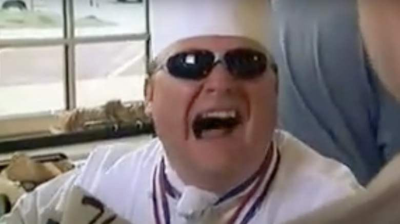 In the unforgettable "Good Eats" episode, "Oh My, Meat Pie," Alton Brown transforms into a singing, meat-cleaving, apron-clad version of Sweeney Todd, the fictional and famous "demon barber of Fleet Street" known for his cannibalistic tastes. Whether chopping vegetables like a madman or dancing around the barber shop, Alton pulls out all of the stops for this episode. Brown's mission in all of this: to teach viewers the fundamentals of meat pie making. It's one of the show's boldest theatrical forays — part musical parody, part culinary lesson, and all Alton.
