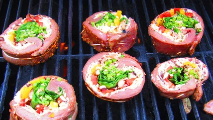 When stuffing any piece of meat, one of the most important considerations to make is how you ensure that it cooks evenly. Cooking a piece of meat over charcoal (or any kind of open fire, really) is difficult at the best of times — but it's especially important to treat any stuffed joint with care. That said, there are ways to make your life significantly easier when it comes to cooking your pinwheels.