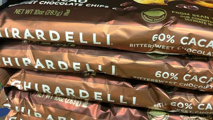 One of the best and original dark chocolate chips, however, has always been the tried and true brand Ghirardelli. This chocolate company is known for its high-quality chocolate and mandate that includes using only the highest quality, sustainably sourced beans available. It was also the first brand to make a larger-than-usual chocolate chip and to proudly display the cocoa percentage on the bag. Its dark chocolate chips, Ghirardelli 60%, have become the go-to for many bakers over the years. So it comes as a surprise to find out that the company's dark chocolate chips have milk fat added to them.