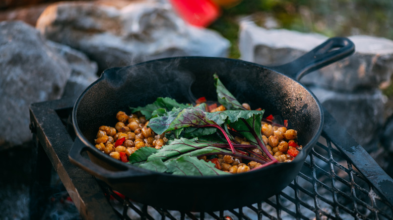 Of course, there are a lot of myths about cast-iron pans that may have you hesitant to follow Previte's advice in this matter. People may fear that they're difficult to clean, pricey, and downright finicky. But as long as your cast-iron pan is properly seasoned before use, you should find success with your outdoor and campfire cooking.