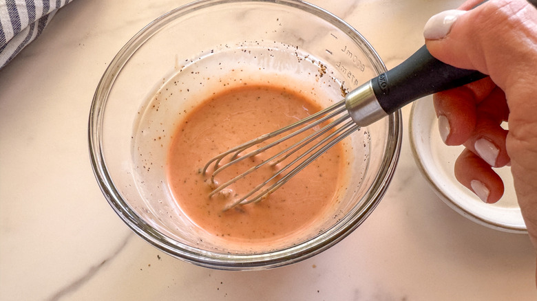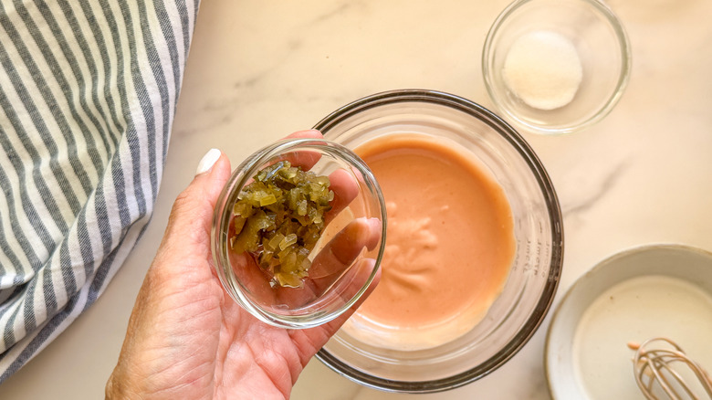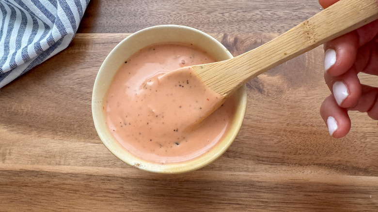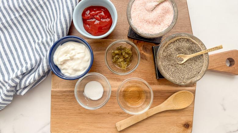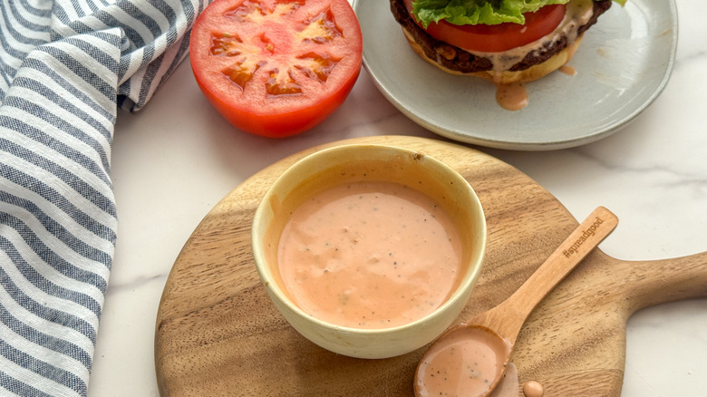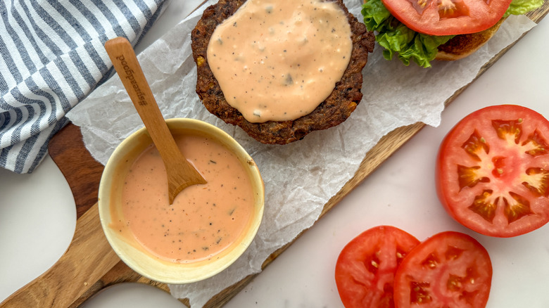 Recipe developer Miriam Hahn brings us this recipe and says, "You'll definitely get that throwback feeling of drive-thru fast-food burgers when you taste this sauce. It was a favorite then, and it's a favorite now. I love how I can whip it together with basic pantry staples without pulling out any appliances. You can even make it dairy-free using vegan mayo." Keep reading to learn how to easily transform burger night into something special.