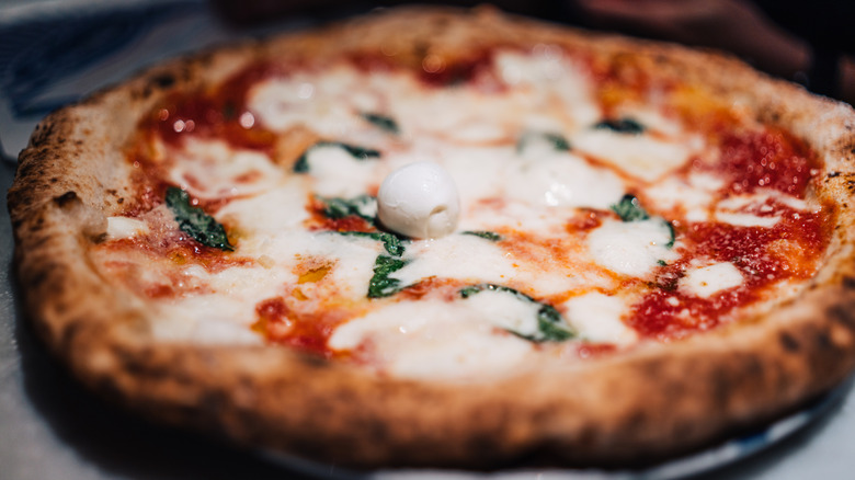 Olives are already fairly at home on a pizza, so spreading this condiment on your pie isn't that outlandish. You can start one of two ways. First, you could bake your crust first and add the tapenade after it's out of the oven. Doing so will ensure your tapenade doesn't dry out. However, doing so also limits your toppings to items that don't need to be hot, such as a pile of dressed Caesar salad or arugula tossed with lemon, olive oil, and Parmesan shavings. You could even leave the tapenade alone, having it be the sole topping on your pizza dough. The second option is, of course, using the tapenade as you would a red sauce — topping it with mozzarella, mushrooms, and whatever else your heart desires.