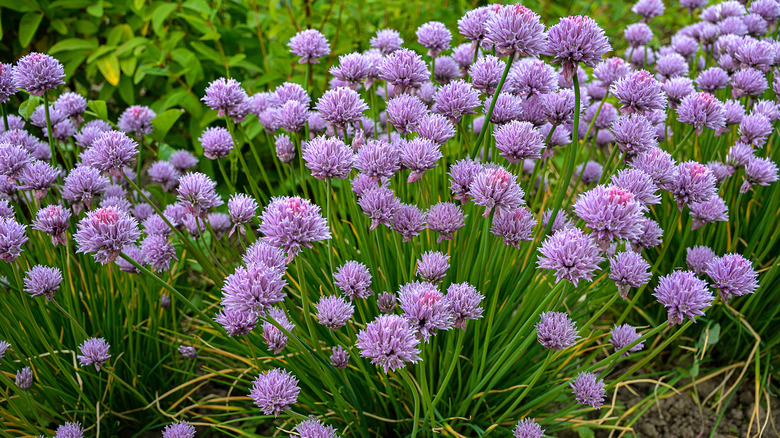 Chives are a point of pride for chefs — getting the perfect chop on a bunch of chives is something of a badge of honor. They're ubiquitous in kitchens for a reason — not only are they delicious, with a heady, pungent oniony flavor, but they also make for a simple yet rather beautiful garnish for just about anything. Their flowers, meanwhile, are delicious in their own right, and make for a particularly pretty topping for savory dishes. They're also only in season for a short while (like other prized alliums such as ramps) which makes them all the more special — that means that you should really use them while you can!