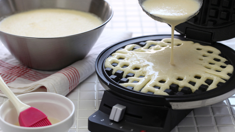 These bubbles don't go away, however, because the cooking process solidifies the batter around them before they can deflate. As a result, the final product — be it pancakes, waffles, tempura batter, or batter for fish — becomes airy and light. This is also what happens when you use beer in batters for fried foods, but if you want to prepare something without alcohol (it doesn't burn off as quickly or as completely as you think), club soda is a good alternative. Note that some cooks swear by sparkling water instead of club soda for batters.